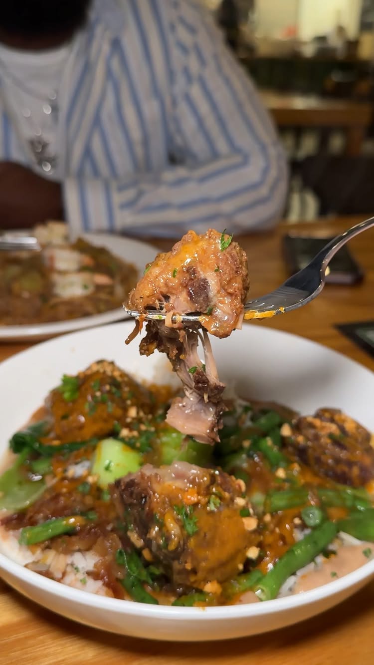 Calamansi Sweet TeaLumpiaAdobo Dusted WingsBraised Oxtail Kare-KareShrimp PancitHalo-Halong HimagasUbe CheesecakeCassava CakeFlanHouse-made Ice Cream