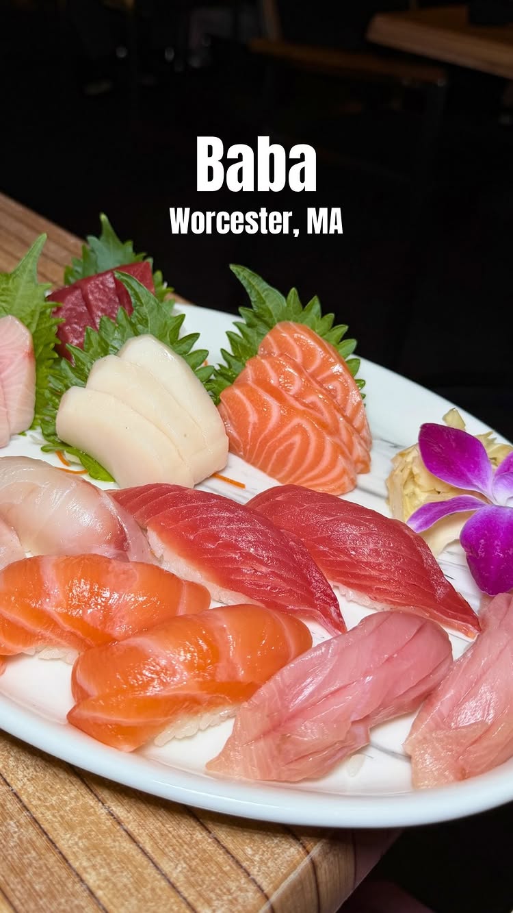 oyster shooterssushi spring rollsalmon bitesscallop rollvolcano rollsashimi nigiri setginger ice creambanana flambe
