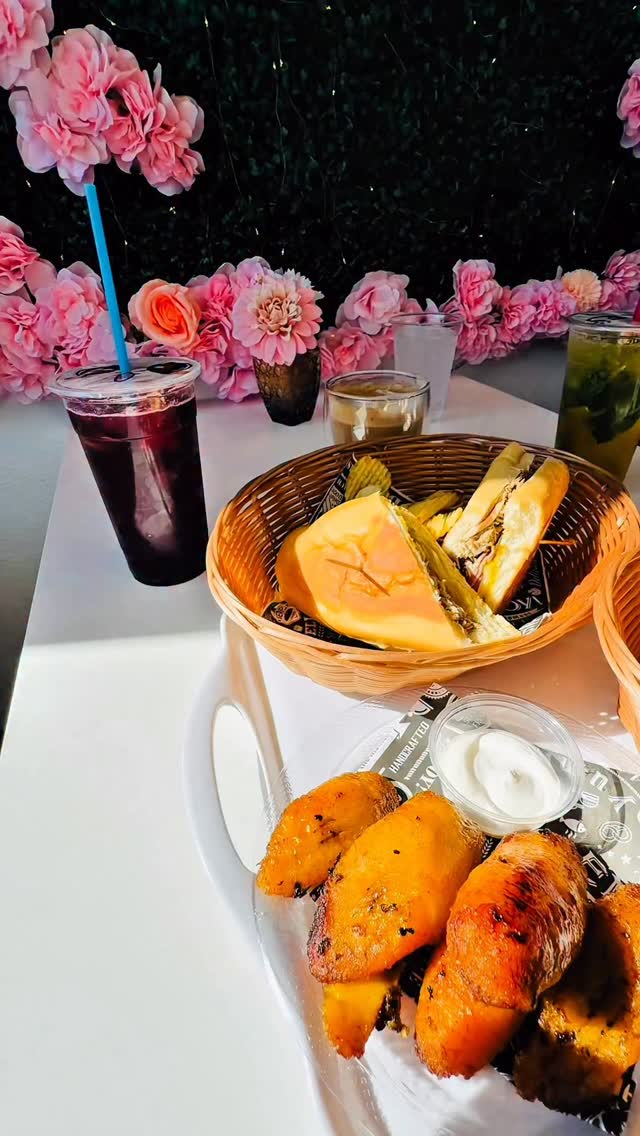 Cafe Con LecheShredded Beef SandwichCuban SandwichEmpanadasDubai Chocolate Chip CookiesPico De GalloGallo PintoSweet PlantainsBlueberry Passion Fruit MojitoCarrot Cake