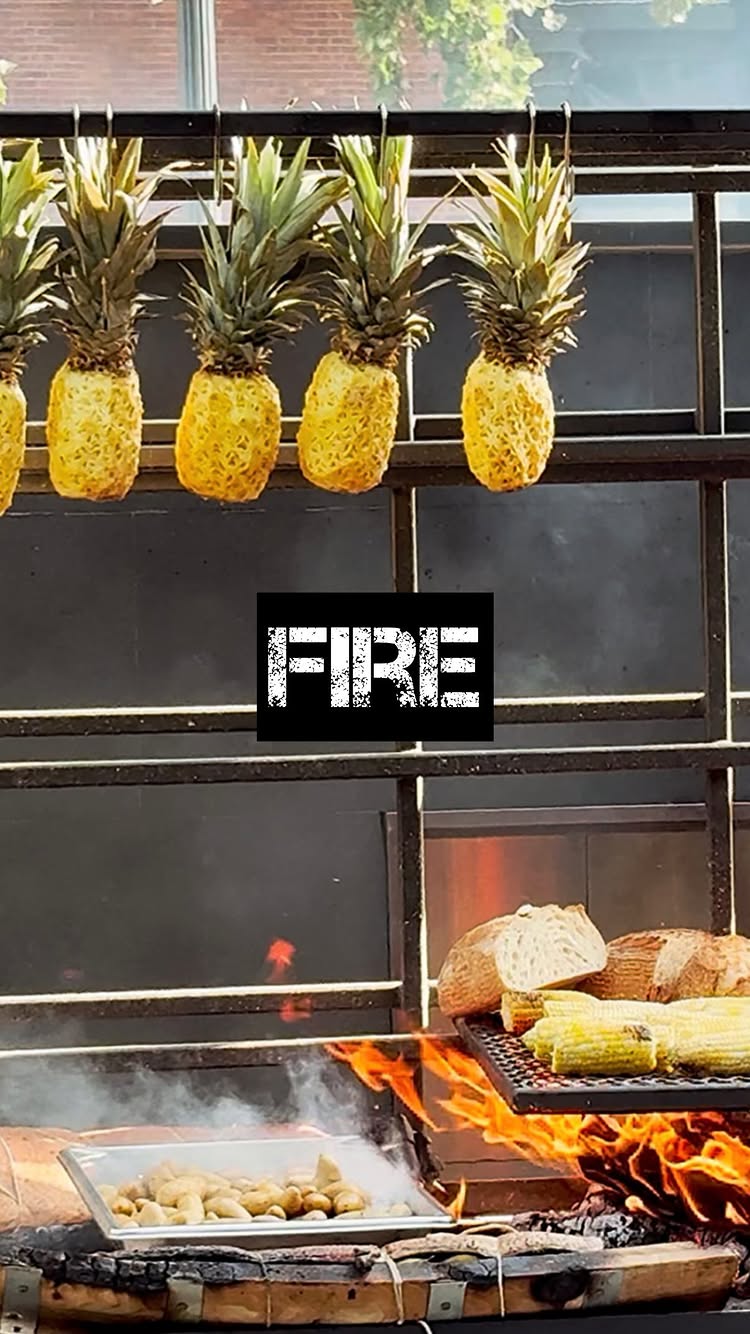 Bone marrow-basted oysters with smoked chili mignonetteGrilled sourdough wedges with smoked garlic confit & maple butterCaesar salad with fire-toasted croutonsPeach burrata saladEmber seared tomahawkChimichurri-lacquered chickenSmoked pork secreto rouladeBourbon barrel miso-glazed salmonSmoked & fire finished bourbon pineapple maple pecan caramel ice creamFlame kissed sweet corn with truffle butterCoal-roasted squash & caramelized onionsCharred potatoes with smoked cheddarRoasted sweet chili cabbage