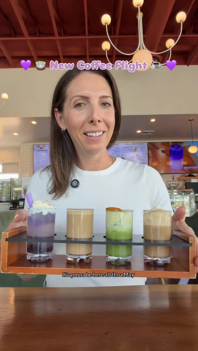 Spring Seasonal Coffee Flightlavender white mochaorange blossom matcharose chaiegg flight bitestoast with burrataprotein turkey toast with honey mustard and crushed pistachios