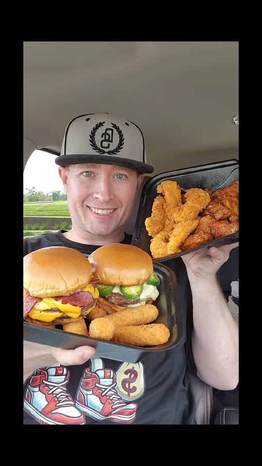 Onion RingsMozzarella SticksTriple Stack Beef Bacon BurgerDouble Jalapeño BurgerChicken TendersChicken WingsBiscoff Shake