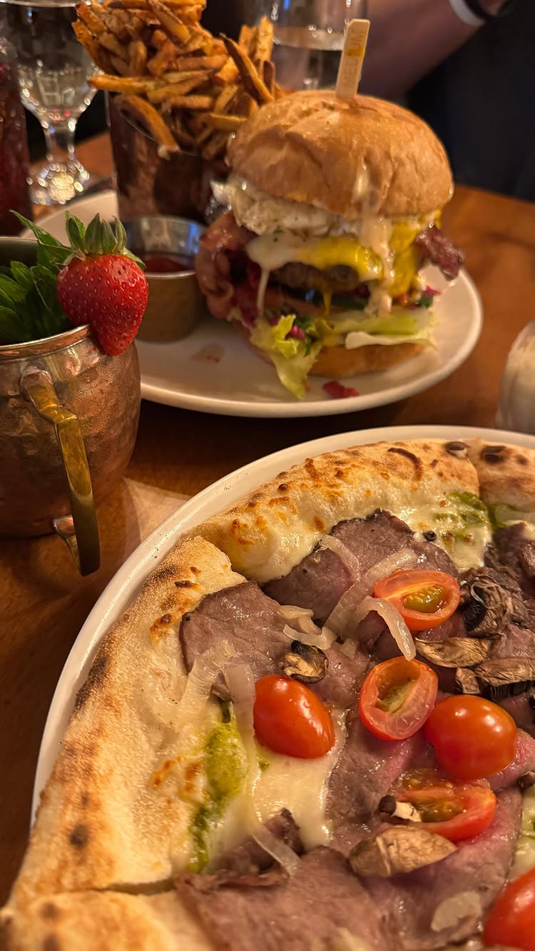 strawberry mint mega muleranchcrab cakestri-tip pizza with chimichurri saucegiant billionaire burgerbread pudding