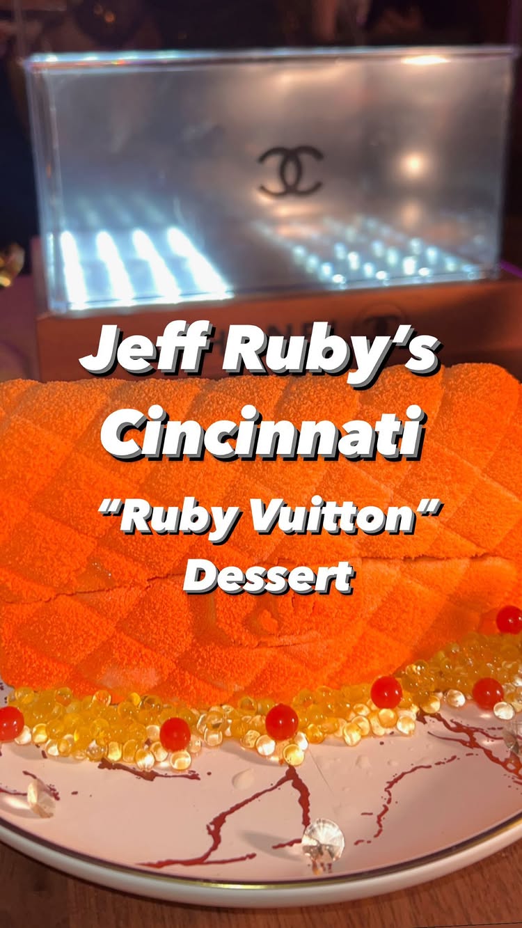 Ruby Vuitton dessertChampagne citrus cakelemon mousseberry reductionmilk chocolate passionfruit ganache