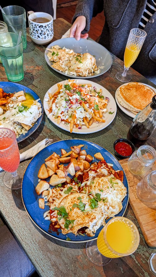 420 FriesChilaquilesMimosa FlightMatchaLatteCafe de Olla