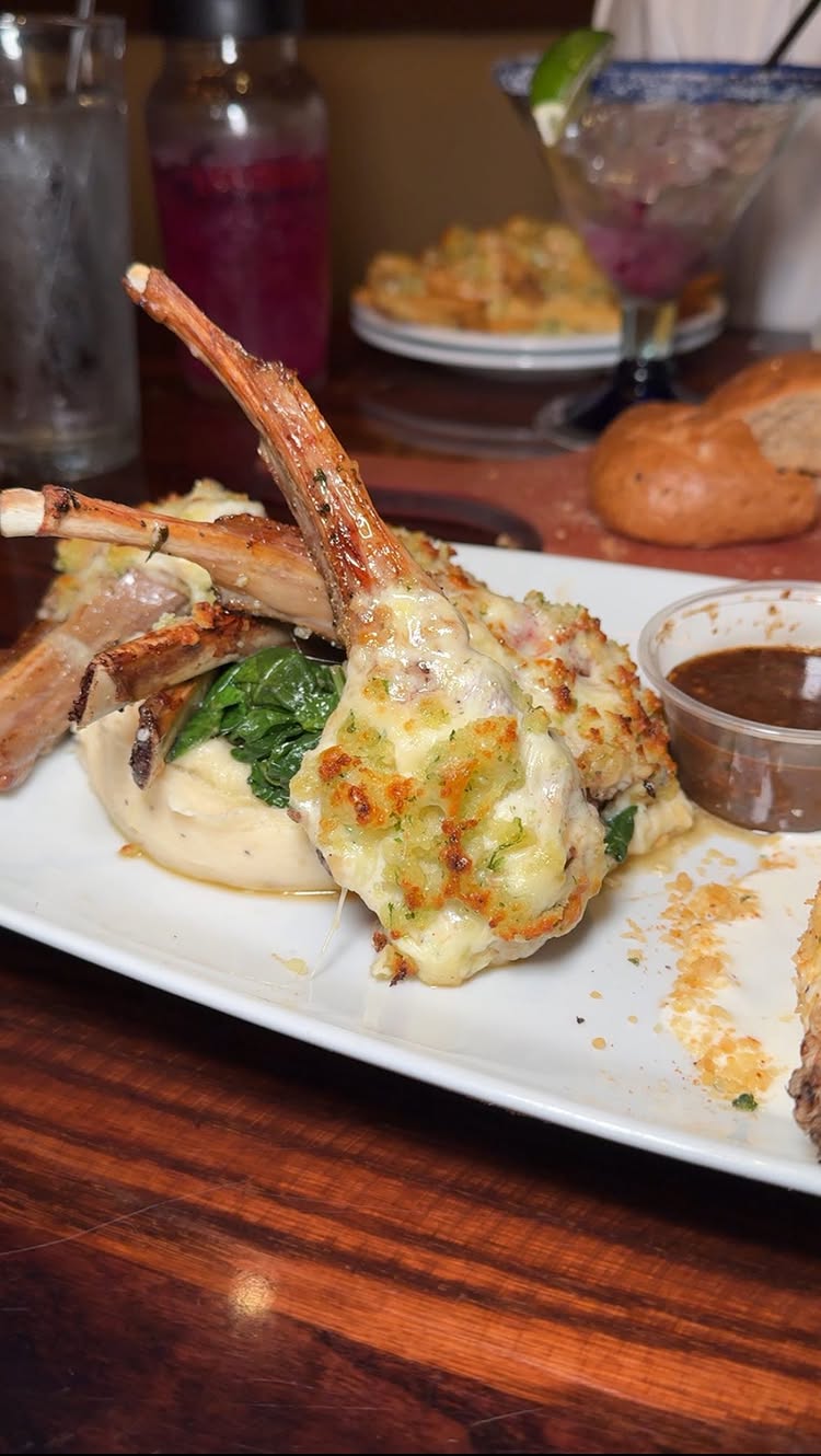 Lamb Chops With Parmesan CrustChicken With Parmesan CrustMashed Potatoes With Parmesan CrustFries With Parmesan CrustCaesar SaladCheesecake