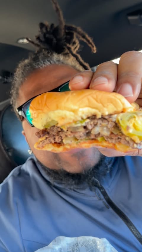 This burger's delicious.