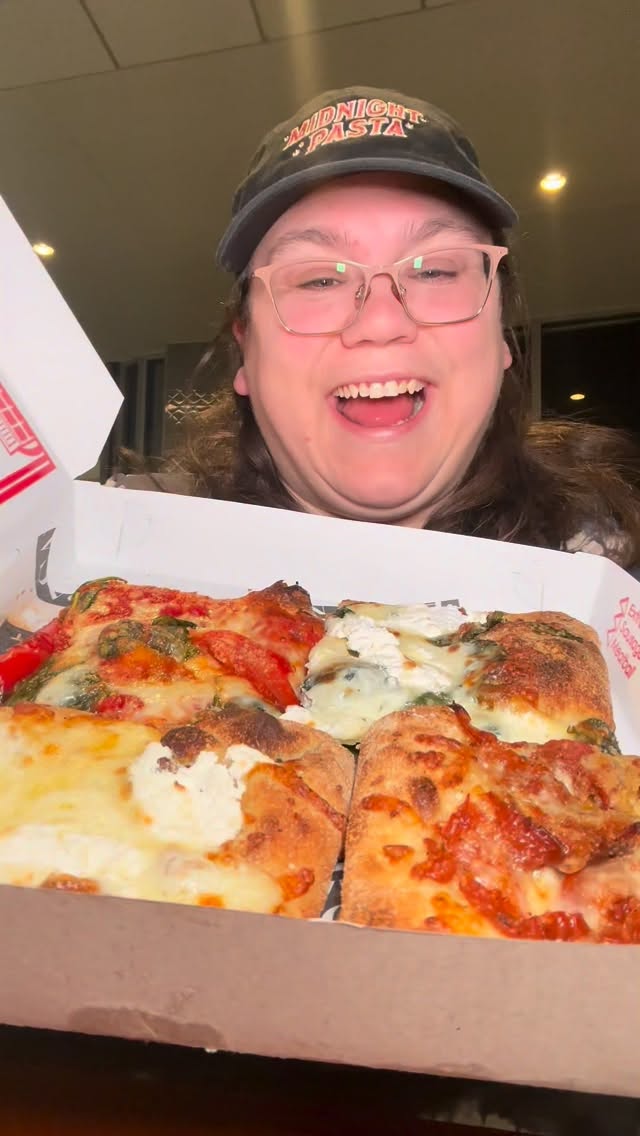 Roman-style pizzaMargherita pizza sliceChicken Cutlet sandwichiced latte