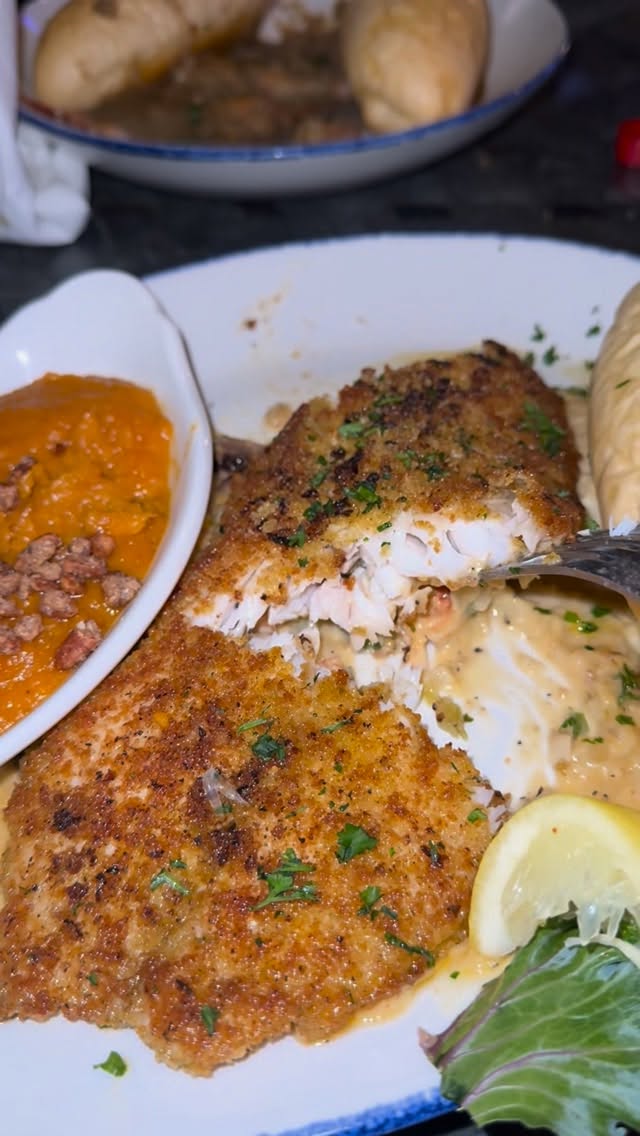 andouille crusted fishdirty ricepotato wedgessweet potato mashNew Orleans style barbecue shrimpblackjack oystertraditional oysterwhite chocolate bread pudding
