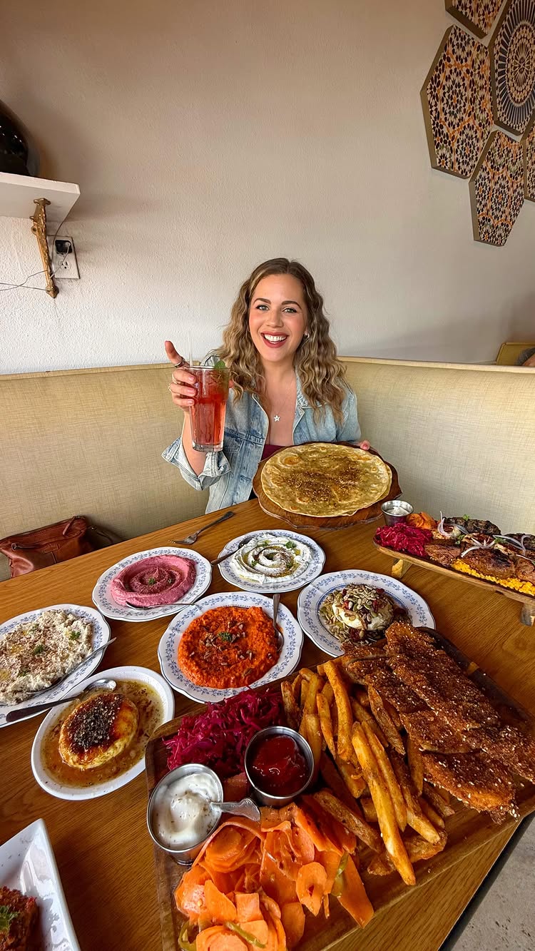 kebabschicken schnitzelkebab platterchickenfilet mignonbeef and lamb mixSaj breadbeetroot tahinigoat cheese with walnuts, sunflower seeds, and honeybaked feta with brulee honeylove nutroasted red pepper dipstrawberry mint soda
