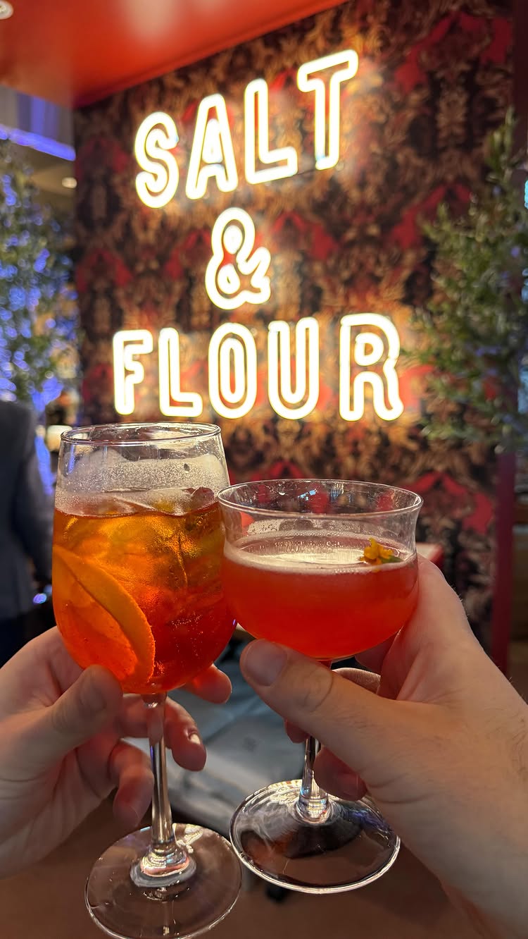 Ground Wagyu & BucatiniSalt & Flour pizzaChopped cheese burgerCaesar saladcharred meatballs & ricottasurf & turfhot honey focaccia pizzagrinder sandwichesParmesan friesbraised rabbitVelvet Espresso MartiniAperol SpritzOne night in manarola