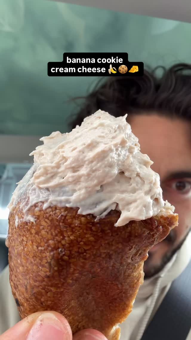 Banana Cookie Cream Cheese On Blueberry Bagel