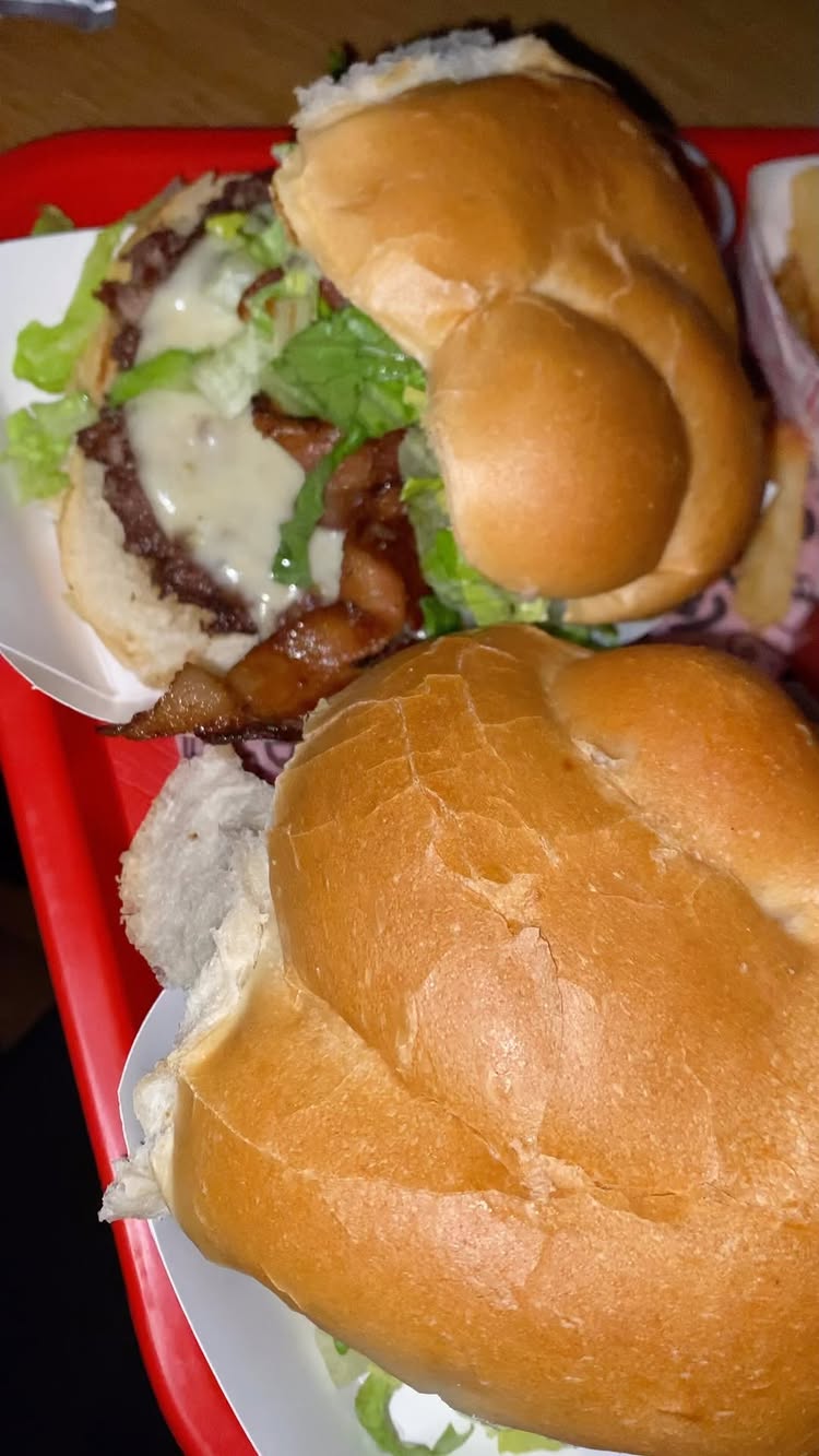 BurgerSmash Burger With Bacon And Hot JamBurgersTotsMilkshakeCajun TotsChocolate MilkshakeSmash BurgerBaconHot Jam