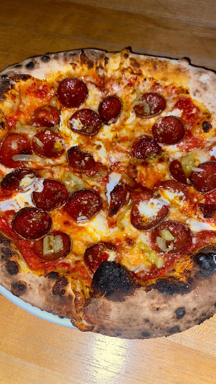 ordered the bee sting pizza with pomodoro, cupperoni, denny's peppers, mozz, hot honey +9.