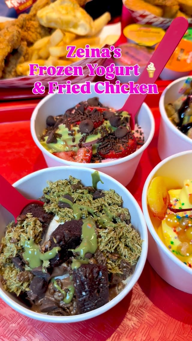 strawberry and matcha frozen yogurtDubai-inspired cupcake batter frozen yogurttender crunch boxtender sandwichhoney butter shrimpbone-in chickennuggetsbiscuit with honey buttergarlic sauce