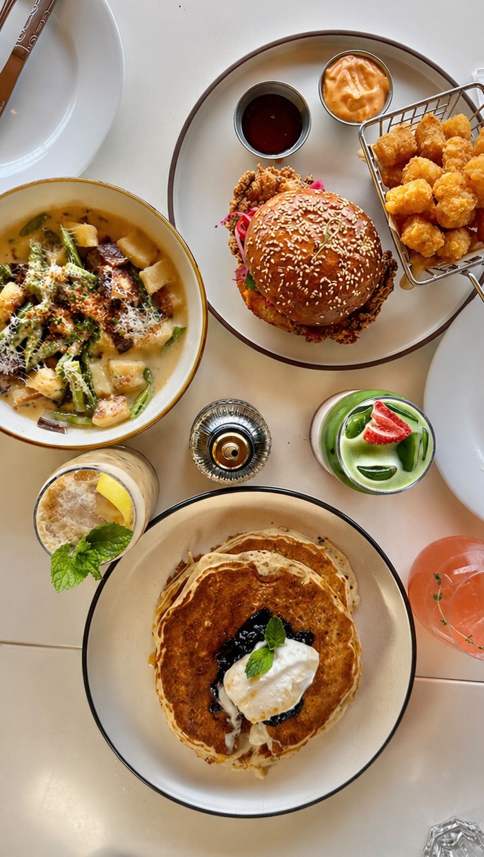 spring gnocchihot honey fried chicken sandwichlemon ricotta pancakestater totsCurious George espressostrawberry pistachio matcha